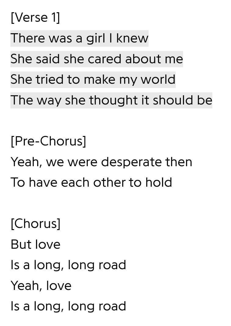 With all the speculation lately surrounding Jason and Lucia's relationship, with one or the other potentially having ulterior motives, I noticed some lyrics from the first trailers music, 'Love is a long road" by Tom Petty, may give credence to these doubts. It could just mean their relationship will face struggles, which is to be expected from a story like this regardless, but maybe Jason feels closer to Lucia than she does to him.